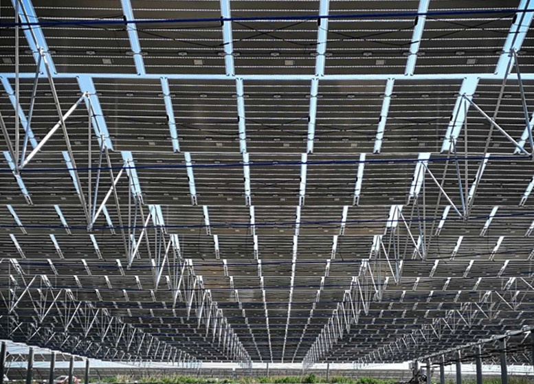 柔性支架項目較普通固定式支架項目具有以下特點:具有廣泛的適用性,可解決污水處理廠、河渠、屋面跨越、地形復(fù)雜的山地等跨度和高度所限造成傳統(tǒng)支架結(jié)構(gòu)無法安裝的技術(shù)難題;資源共享,可高位布置在上層,實際占用地面極小,與下層地面/水面共享收益;安全可靠性高,由于采用立體懸索網(wǎng)架結(jié)構(gòu),在大風(fēng)和其他惡劣氣象條件下系統(tǒng)穩(wěn)定,風(fēng)振小,保證了光伏組件安全可靠運(yùn)行和長壽命。