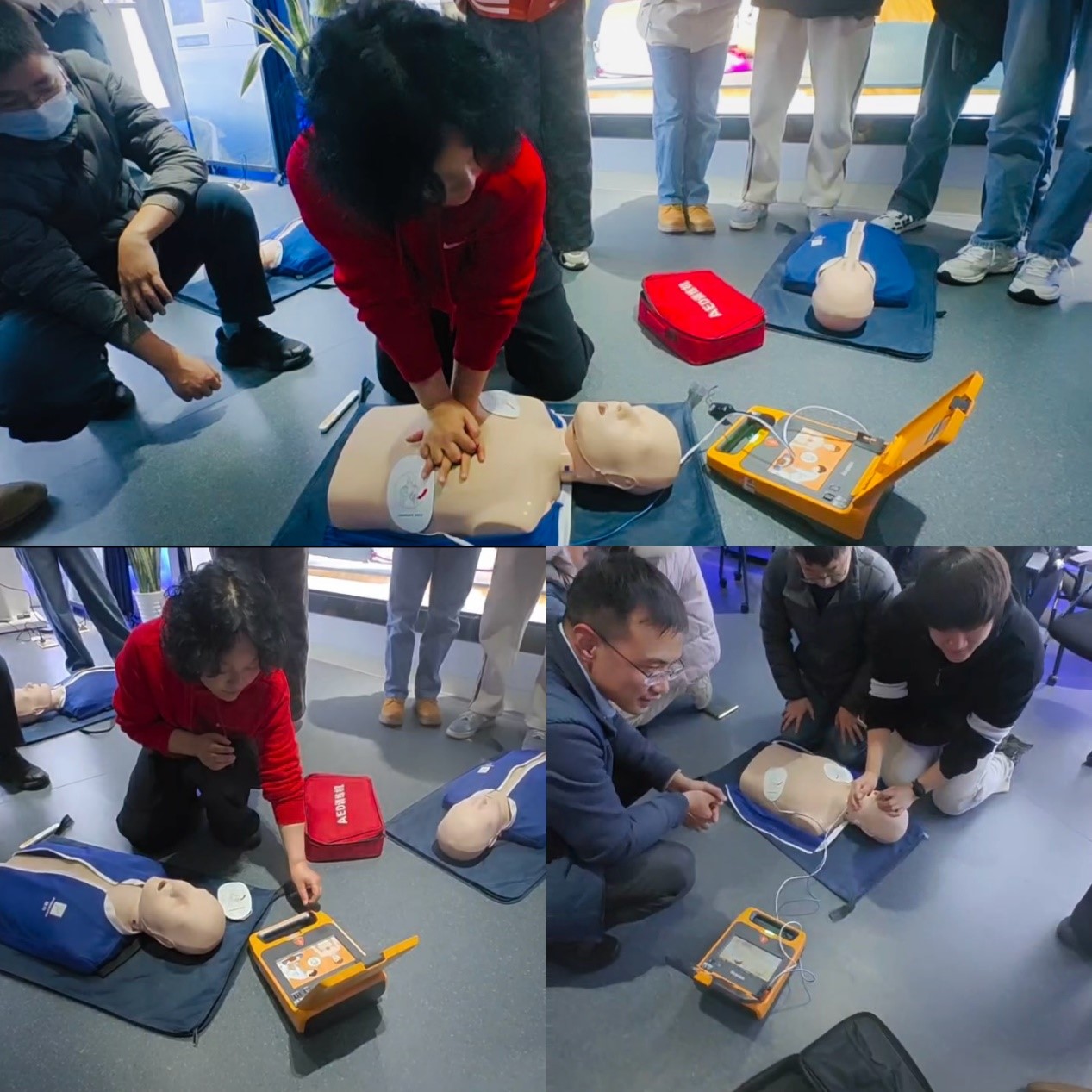 在心臟復(fù)蘇培訓(xùn)環(huán)節(jié),講師詳細(xì)講解了心臟驟停的常見原因、判斷方法以及心肺復(fù)蘇的操作流程和要點?!鞍l(fā)現(xiàn)有人倒地,要先確?,F(xiàn)場環(huán)境安全,然后拍打患者雙肩并呼喊,判斷其意識是否清醒,同時觀察患者胸部有無起伏,判斷呼吸情況?!?講師一邊講解,一邊通過模擬人進(jìn)行示范,對胸外按壓的位置、深度、頻率以及人工呼吸的操作方法等都進(jìn)行了細(xì)致演示,特別強(qiáng)調(diào)了 “黃金四分鐘” 對于挽救心臟驟?;颊呱闹匾?。