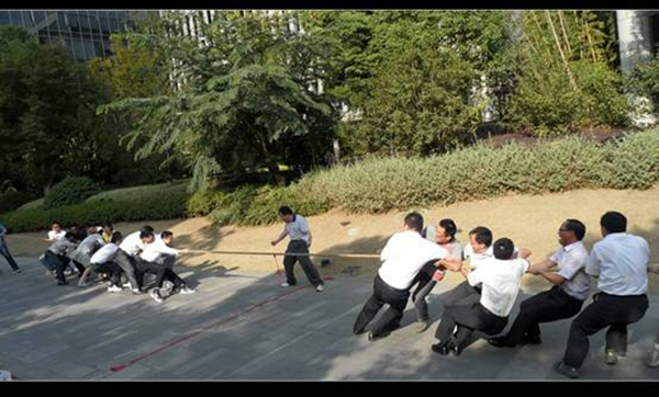 活動(dòng)分為兩個(gè)環(huán)節(jié),第一個(gè)環(huán)節(jié)是集體拔河比賽。公司所有員工兵分兩隊(duì),分別由副總經(jīng)理文方和財(cái)務(wù)總監(jiān)周洛帶隊(duì)指揮,于下午15點(diǎn)整準(zhǔn)時(shí)在辦公園區(qū)樓下集合。雙方隊(duì)員入場后各自排兵布陣,摩拳擦掌,躍躍欲試。隨著裁判一聲哨響,在拉拉隊(duì)的加油聲中,雙方展開了激烈的角逐,隊(duì)員們個(gè)個(gè)憋足了勁兒,為自己的團(tuán)隊(duì)奮力拼搏,你不讓我,我不讓你,精彩紛呈。輸贏結(jié)果并不重要,重在參與和體驗(yàn)大家齊心協(xié)力、頑強(qiáng)抗?fàn)幍倪^程。