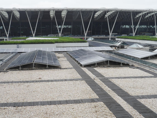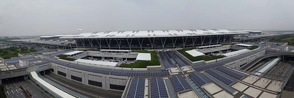上海浦東國(guó)際機(jī)場(chǎng)屋頂光伏發(fā)電系統(tǒng)為國(guó)家光電建筑一體化示范項(xiàng)目,光伏方陣布置在浦東國(guó)際機(jī)場(chǎng)T1、T2航站樓交通中心通道的屋頂上,采用高效晶硅光伏瓦組件,與建筑統(tǒng)一協(xié)調(diào),屋面按照布置區(qū)域分為8個(gè)發(fā)電單元,匯流至4個(gè)10kV/0.4kV變電站,經(jīng)逆變后在低壓側(cè)并網(wǎng),預(yù)計(jì)年發(fā)電量170萬(wàn)千瓦時(shí)。項(xiàng)目建成后,能有效緩解浦東國(guó)際機(jī)場(chǎng)的用電壓力,實(shí)現(xiàn)節(jié)能減排,成為綠色建筑的典范之一。