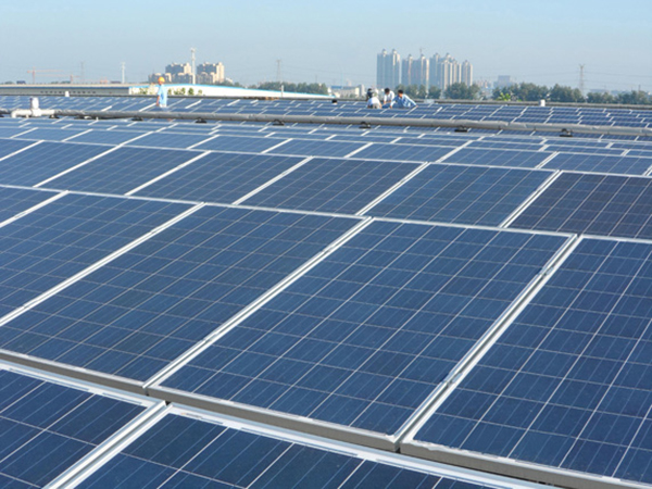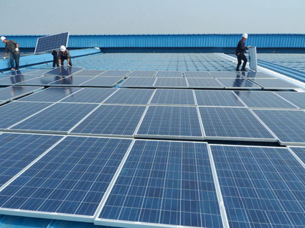 本工程建設(shè)在浙江嘉興經(jīng)濟(jì)開發(fā)區(qū)內(nèi)5個工業(yè)園區(qū)屋頂上,采用標(biāo)準(zhǔn)功率為245Wp的晶硅組件,砼結(jié)構(gòu)屋頂采用鍍鋅支架,組件與水平面呈15°傾角安裝,彩鋼屋頂采用鋁合金支架,沿屋面平鋪,光伏組件通過壓塊固定在支架上。光伏發(fā)電系統(tǒng)采用分片發(fā)電、就近并網(wǎng)的技術(shù)方案,交流輸出端接至企業(yè)配電柜,按就近原則給負(fù)載供電。本項(xiàng)目年均發(fā)電量為1260萬千瓦時。