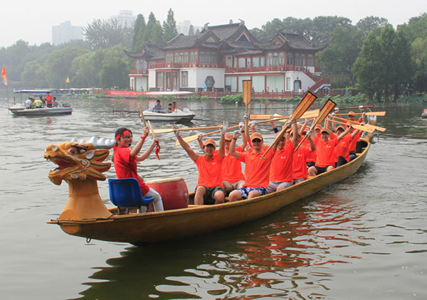 2014年6月29日上午,為加強對外交流,公司應邀參加了在莫愁湖舉辦的“第二屆龍舟聯(lián)誼賽”。經過兩輪的激烈比賽,羲和太陽能電力有限公司以優(yōu)異的成績獲得“最佳拼搏獎”團體獎,金玲榮獲“最佳鼓手”個人獎。