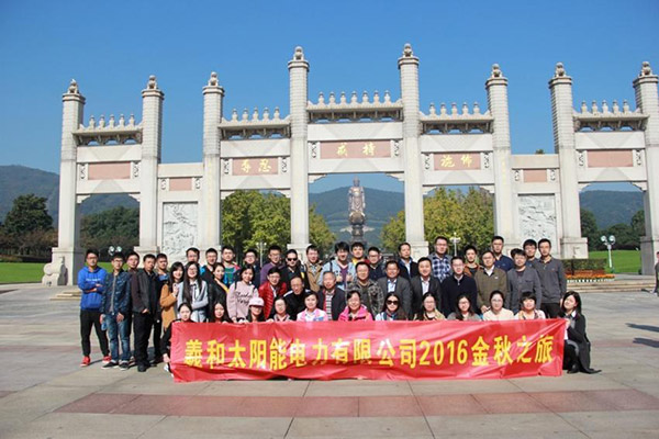 又是一年深秋季,更是羲和秋游時(shí),似乎天公作美,秋末的陰雨連綿,終于被溫暖的陽(yáng)光所驅(qū)逐,可謂“斷虹霽雨,凈秋空,山染修眉新綠”!伴隨著晨曦旭日,羲和太陽(yáng)能電力有限公司2016金秋之旅在無(wú)錫靈山共渡美好!