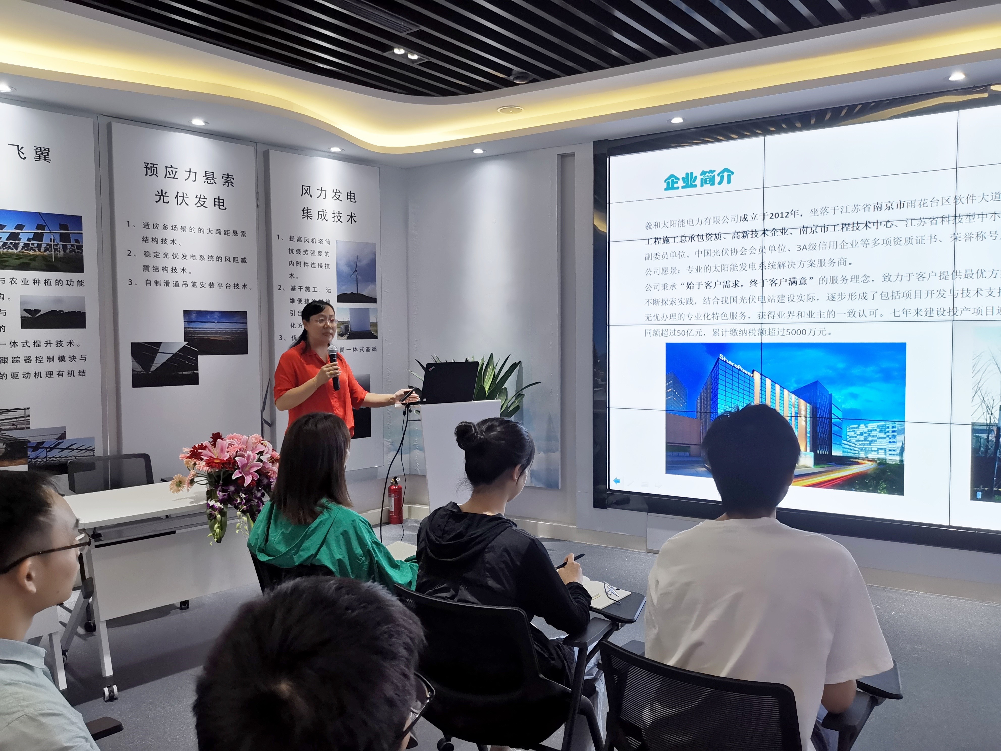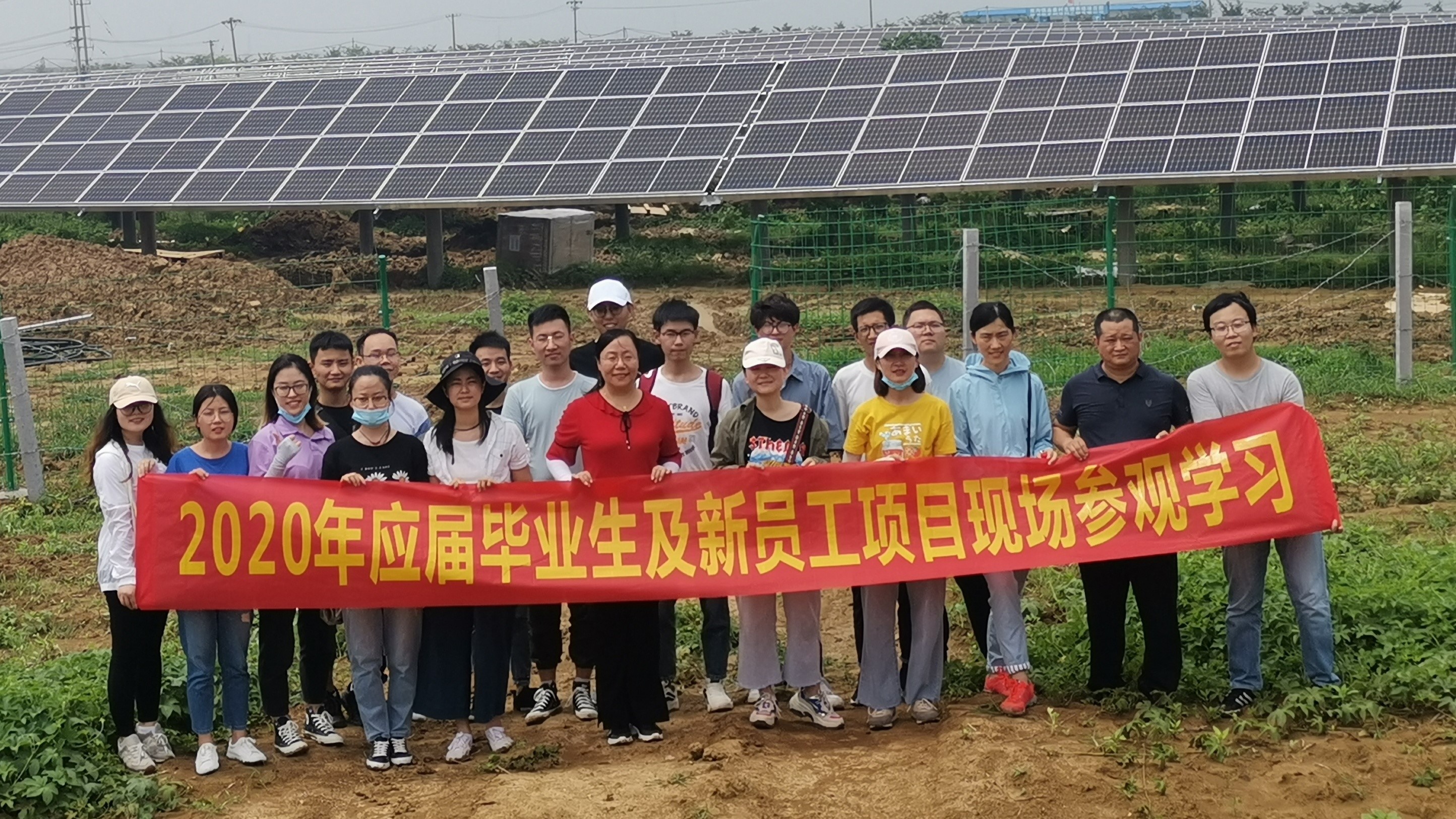 7月7日,在人力資源部卞亞萍總經理、人力資源管理師池玲以及設計研究院田順慶主任的帶領下,新員工來到三峽泗洪112MW牧光互補光伏項目現場進行參觀學習,田主任結合設計與施工詳細向大家介紹了現場光伏電站的構成、新技術應用、設備選型等內容,新員工們踴躍提出各種問題,田主任一一耐心解答,新員工們收獲頗豐。