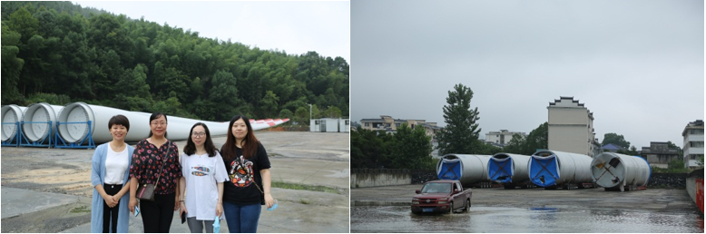 慰問團隊于下午18點到達修水縣城,由于距項目部還有30多公里的山路,因此接受項目部建議,決定第二天上山,當(dāng)晚與項目團隊在修水縣城聚餐并與每位員工親切溝通。25日清晨,細(xì)雨蒙蒙,慰問團隊首先趕到項目臨時堆場,第一次近距離看到風(fēng)機葉片、塔筒等大型設(shè)備,大家非常興奮,但欣喜之余也不禁感嘆在這樣的雨季山路運輸?shù)钠D難和施工任務(wù)的艱巨。