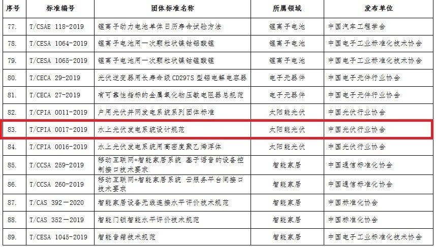 羲和電力主編《水上光伏發(fā)電系統設計規(guī)范》入選工信部2020團體標準示范項目