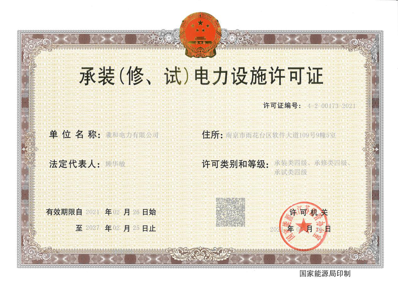 近日,經(jīng)認真籌備、申報,羲和電力有限公司資質(zhì)工作取得可喜成績,順利通過國家能源局江蘇監(jiān)管辦公室審批,喜獲承裝(修、試)電力設施許可證三承四級資質(zhì)(證書編號:4-2-00173-2021)證書。該資質(zhì)的獲取為公司后續(xù)開拓市場、發(fā)展業(yè)務奠定堅實的基礎(chǔ)。