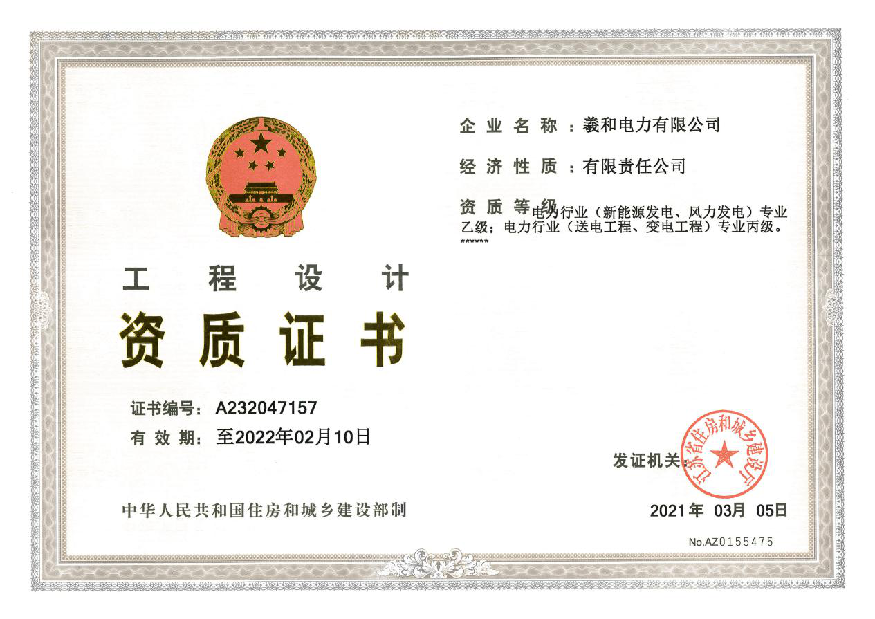 羲和電力有限公司喜獲電力行業(yè)送電工程、變電工程專業(yè)丙級資質(zhì)