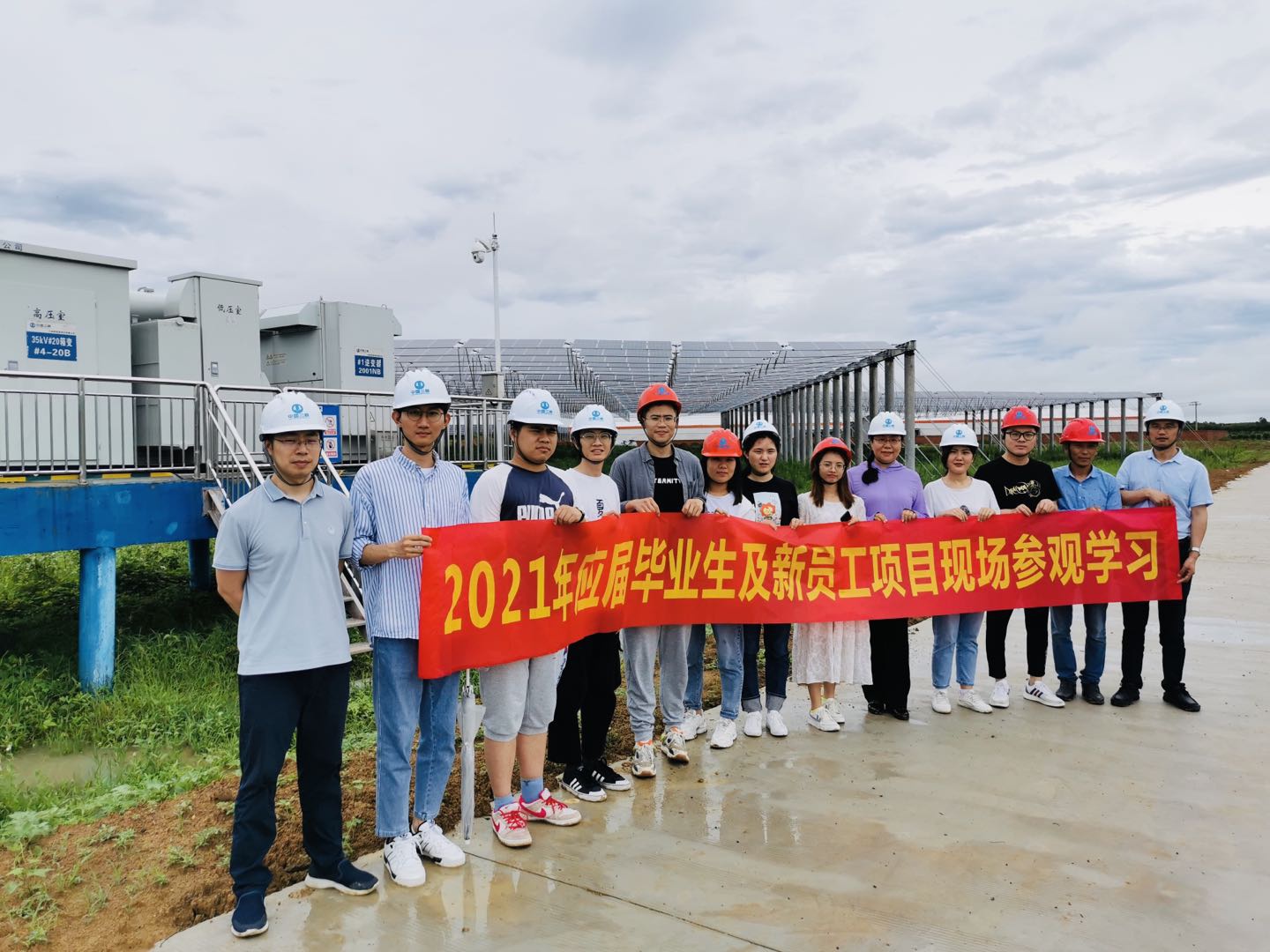 7月7日,在人力資源部卞總、設(shè)計(jì)研究院莊總監(jiān)的帶領(lǐng)下,新員工來(lái)到了三峽泗洪100MW牧光互補(bǔ)光伏項(xiàng)目現(xiàn)場(chǎng)進(jìn)行參觀學(xué)習(xí)。在項(xiàng)目現(xiàn)場(chǎng),一行人受到了泗洪項(xiàng)目部的熱情款待,隨后項(xiàng)目部王新廣和路旭東前輩向大家介紹了現(xiàn)場(chǎng)光伏電站的構(gòu)成、新技術(shù)應(yīng)用、設(shè)備選型等內(nèi)容。參觀途中突遇大雨,道路泥濘,但這點(diǎn)困難擋不住新員工的學(xué)習(xí)熱情,大家與兩位項(xiàng)目專(zhuān)業(yè)工程師積極探討相關(guān)問(wèn)題,新員工們收獲頗豐。